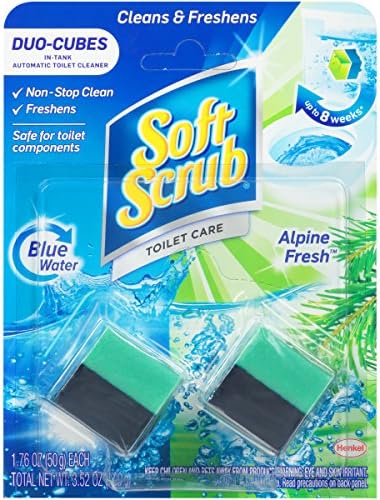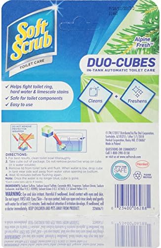 Helps fight toilet ring, hard water, and limescale stains Safe for toilet components Easy to use Each Duo Cube cleans up to 4 weeks This package contains 2 Duo-Cubes in Soft Scrub's Alpine Fresh scent for a total of 8 weeks of cleaning