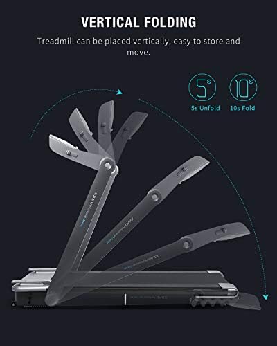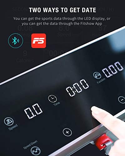 【Frameless Track】Folding treadmill has the frameless design, which solves the traditional treadmill on both sides of the pedal higher than the running belt safety hazard. Frameless track can avoid stumbling in the movement, bring a comfortable road feeling and experience the feeling of free running。 【Silkworm Rebound Damping Technology】 The new Silkworm slow rebound damping technology addresses the traditional treadmill knee injury problem, protecting the knee from rebound injuries by absorbing the impact of the tread and releasing it later. Low noise design to avoid disturbing your neighbors and children during exercise. Suitable for home and office use. 【Smart Decelerate】 During exercise, touch the fatigue deceleration button and the speed can be reduced to walking speed. Touch this button again and the speed can be restored to the initial set speed, providing you with safer and more convenient exercise experience. 【Two Ways To Get Data】Electric treadmill offers two choices for users to obtain the personal data. The data is displayed directly on the LED screen or download Fitshow App for fetching the in-time data and sharing with friends. 【Convenient Restore & Return Tips】Portable treadmill adopts a folding design, it can be vertically worn and covers an area of less than 5.39ft, making it easy to move and store and suitable for small space use. Please check the product and confirm that there is no problem before discarding the package, otherwise it will affect the return of the product.